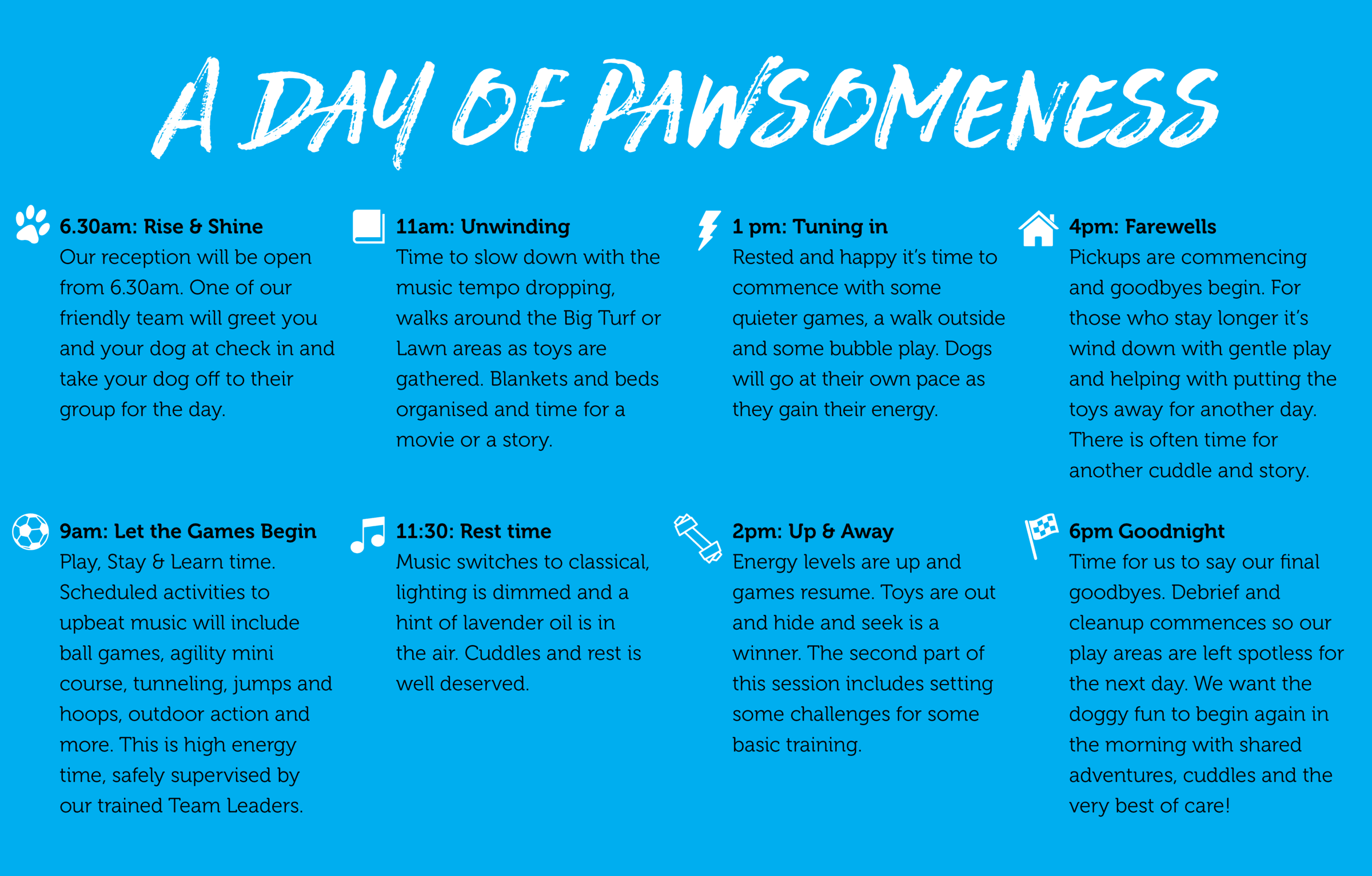 You want the best for your dog, and so do we. That's why at Paws Wellbeing Centre, we've created Hamilton's premier doggy day care where your dog's holistic welfare needs are met⦠every single day.